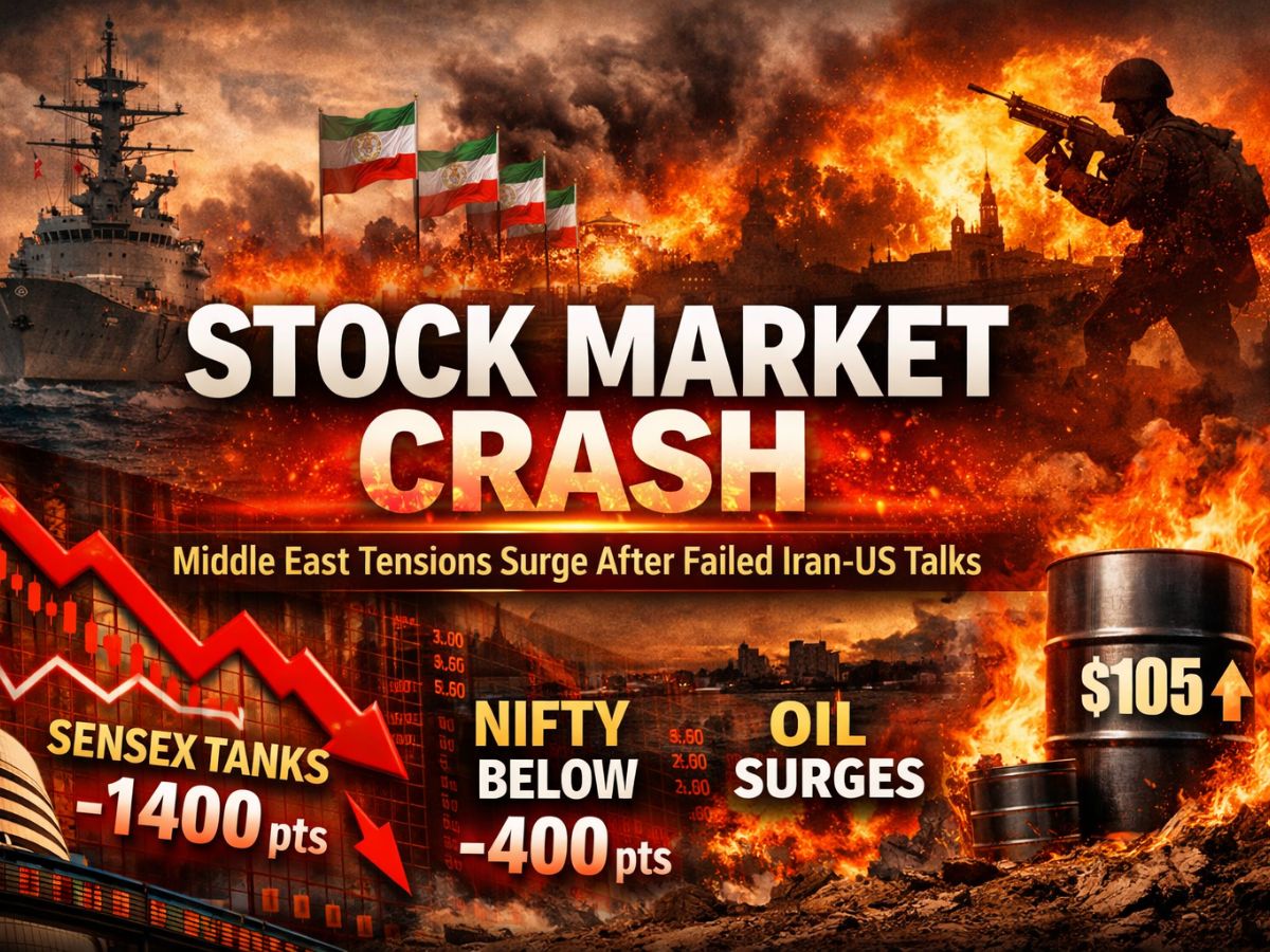 Stock Market Crash News: Indian equity markets opened the week on a negative note at the global risk-off sentiment triggered by intensifying geopolitical conflicts over the Middle East. The deadlock of Iran-US talks in Islamabad and the reports of US naval blockade on Iranian ports sent global financial markets into panic mode. Investors reacted sharply to the concerns of a protracted conflict that has pushed crude prices above the $ 100–$ 105 per barrel threshold again, triggering fear about inflation, import costs and growing current account pressure on India. BSE Sensex fell more than 1,400 points at the opening bell, while NSE Nifty 50 fell more than 400 points owing to a runaway sell-off across all sectors.