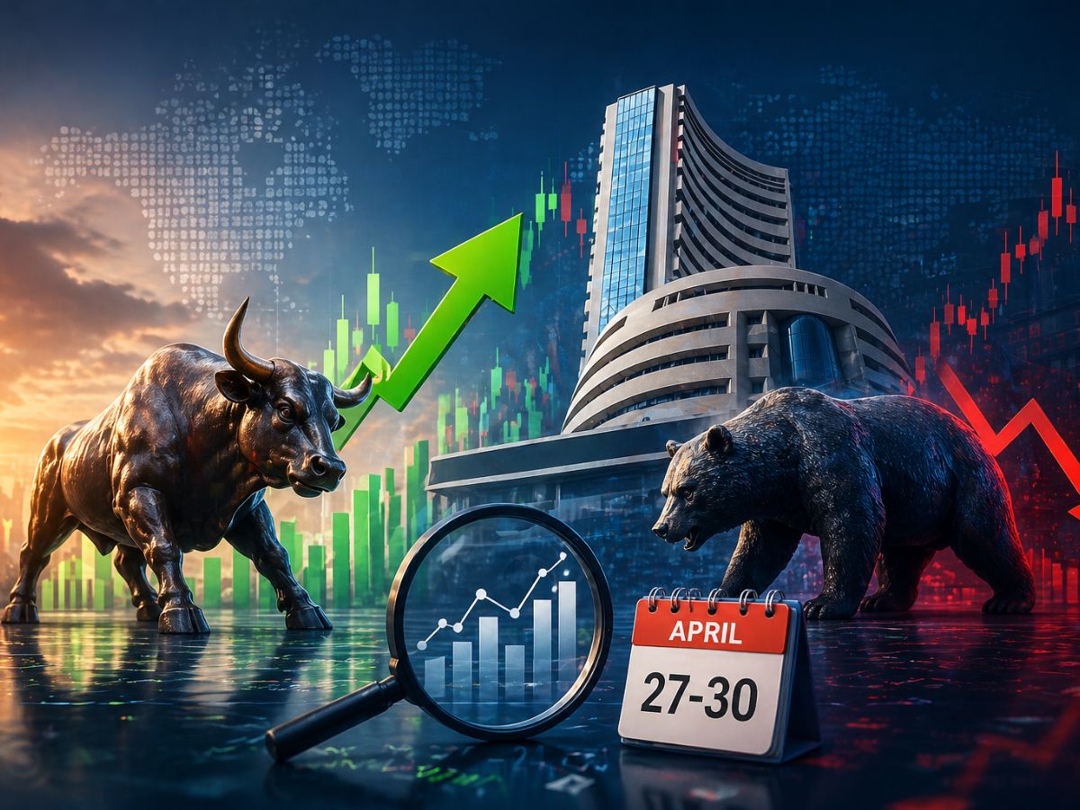 Stock Market (April 27-30): Indian equity markets look into final week of April with a cautious undertone as benchmark indices rest after rally. Benchmark indices rest at 23,897 for Nifty 50 after a decline of almost 2 percent last week as it ended its two week gaining streak. Bank Nifty is a little more resilient and declined by less than 1 percent to settle at 56,089. This reflects a profit booking trend as investors take their gains from recent rally. With global uncertainty, rising oil prices and Q4 earnings announcements on the horizon, market players are likely to take a more selective and stock-specific approach rather than chasing momentum.