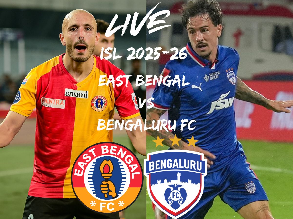East Bengal vs Bengaluru FC ISL Live Score and Updates: Saul made it 2-2 right after the break but Ryan Williams restored BFC’s lead in the 71st minute. It’s half-time at the Salt Lake Stadium, with Bengaluru FC holding a narrow 2-1 lead over East Bengal FC. Bengaluru struck first through Ashique Kuruniyan, before Anwar Ali brought East Bengal level. However, the game turned on its head when Miguel Figueira was sent off, leaving East Bengal down to 10 men. Bengaluru capitalised on the advantage, scoring again to regain the lead. With a man down and trailing, East Bengal now face a tough challenge in the second half. Stay tuned for EBFC vs BFC live score, EBFC vs BFC live match updates, key moments, and real-time coverage from this blockbuster EBFC vs BFC encounter here on NewsX.