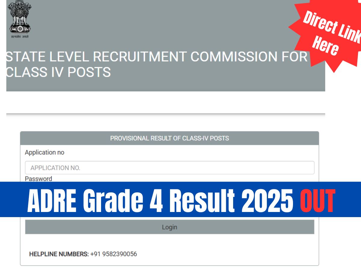 ADRE Result 2025: The State Level Recruitment Commission (SLRC), Assam, has recently released the ADRE Grade 4 Result 2025. Candidates who appeared for the ADRE Grade 4 exam can now check the result through the official website sebaonline.org using their application number and password.