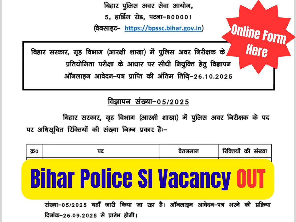 Direct Link of Bihar Police SI Online Form 2025: Click Here to Apply