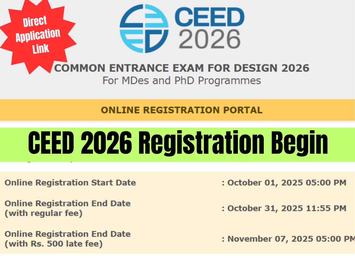 Candidates must register for the CEED 2026 by October 31, 2025, with the regular fee. The last date to register for CEED 2026 is November 18, 2025, with a late fee of Rs 500.