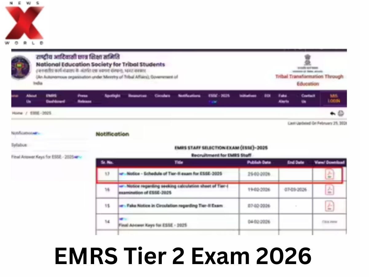 The National Education Society for Tribal Students (NESTS) has released the EMRS Tier-II exam schedule 2026 for recruitment to teaching and non-teaching posts in Eklavya Model Residential Schools (EMRS). The recruitment is being conducted through the EMRS Staff Selection Examination (ESSE) 2025.
