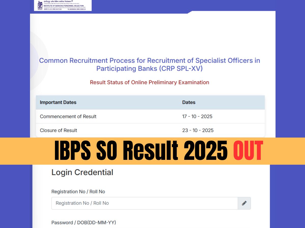 IBPS SO Result 2025 OUT: The Institute of Banking Personnel Selection (IBPS) has recently released the IBPS SO Result 2025 on the official website. Candidates who appeared for the IBPS SO Exam conducted on August 30, 2025, can now download the IBPS SO Result through the official website www.ibps.in using their Username/Registration Number and Password/Date of Birth.