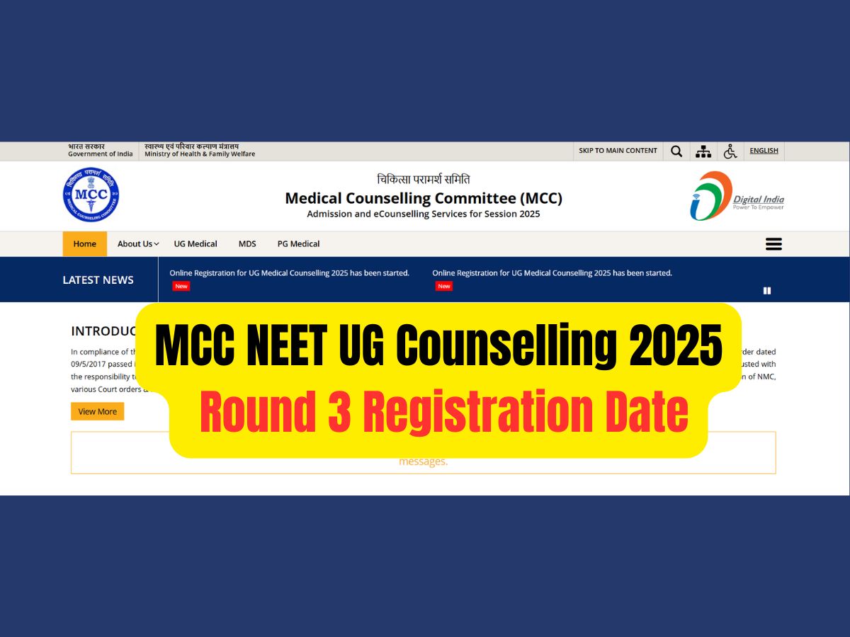 The Medical Counselling Committee (MCC) will conduct the NEET UG counselling 2025 round 3 for admissions to undergraduate medical courses. According to the latest notification, the registration process for Round 3 will commence on September 29, 2025.