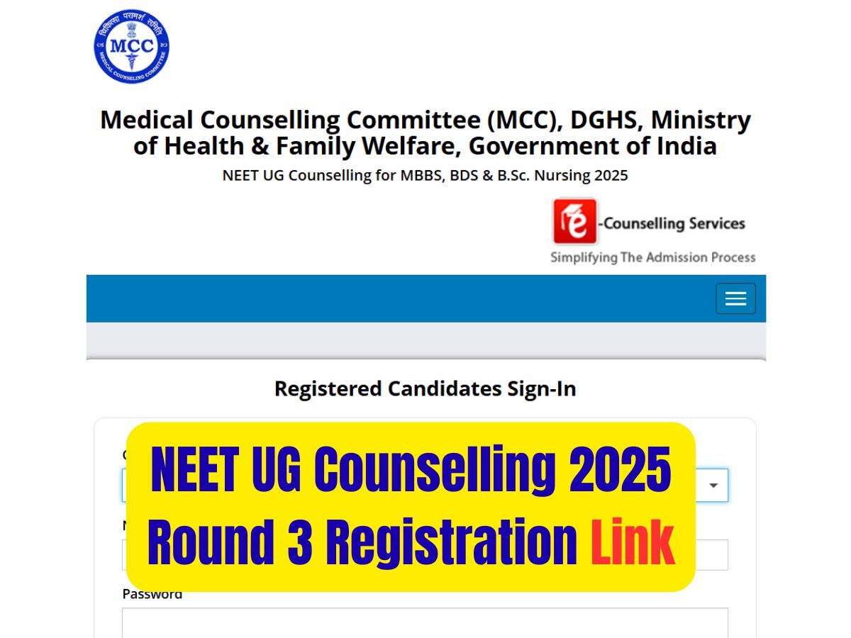 NEET UG Counselling 2025 Round 3: The NEET UG 2025 round 3 seat allotment registrations for the counselling have already begun. Interested candidates can now apply for the counselling process through the official website, mcc.nic.in. The last date to apply for NEET UG counselling 2025 round 3 seat allotment is October 5, 2025, till 12 noon. However, candidates will be able to pay the registration fee till 3 pm on October 5, 2025. Candidates are advised to fill their choices for the third round of counselling between 30th September and 5th October 2025 to avoid last-minute hustle.