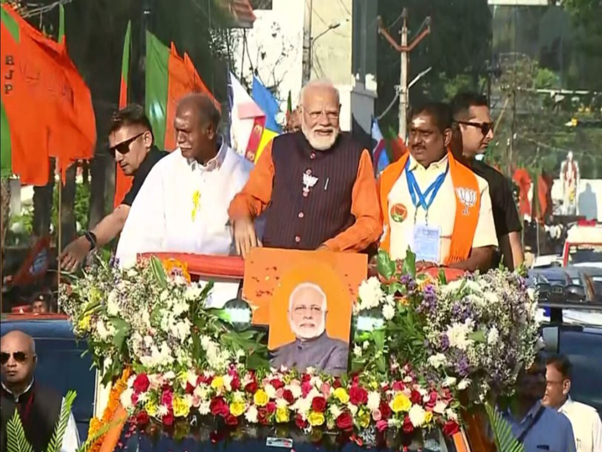 With just a week left for the Puducherry Legislative Assembly elections, PM Narendra Modi held a major roadshow from Ansari Duraisamy Road to Kamaraj Salai in the Union Territory. The event was attended by N. Rangasamy, A. Namassivayam and BJP state president and Raj Bhavan constituency candidate A. John Kumar, along with a large number of supporters.