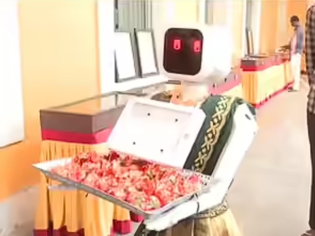A humanoid robot named Nila, dressed in a saree, greeted voters at the VOC Government School polling station in Puducherry on Thursday. The interactive machine welcomed people as they arrived to cast their votes, adding a modern touch to the Assembly elections in the Union Territory.