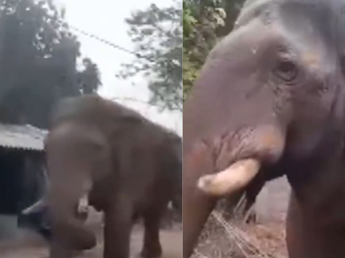 VIDEO | West Bengal Polls: An elephant entered the area near the polling station at Jitusol Primary School in Jhargram.