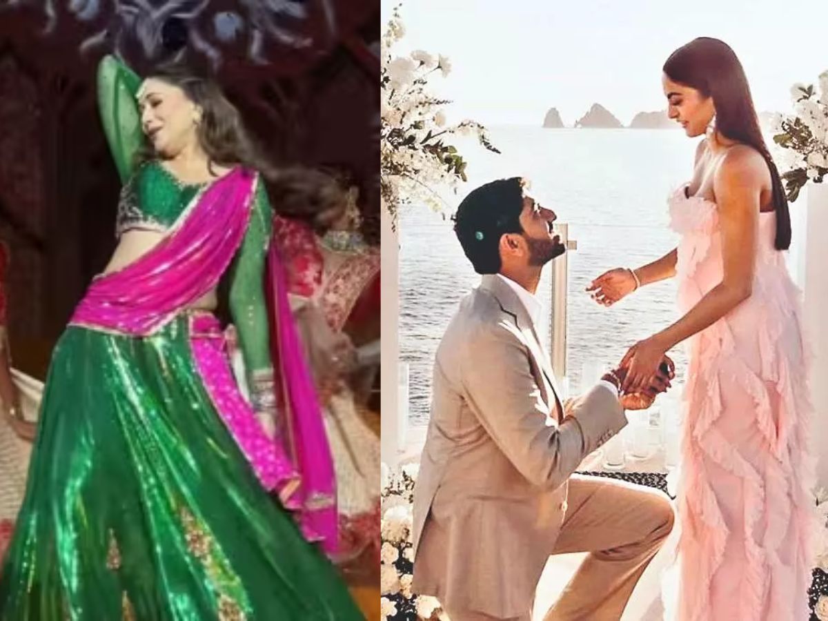 Madhuri Dixit captivated the mehendi ceremony with a classic performance of her famous song “Dola Re Dola” from the film Devdas. Dressed in a luxurious green lehenga-choli and pink dupatta, she performed the familiar hook step with elegance and vibrant energy.