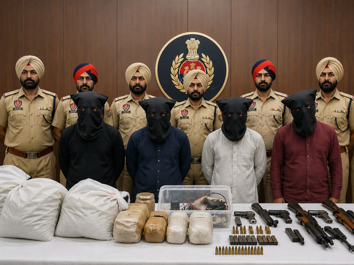 Patiala Police have uncovered a terror group linked to Pakistan’s ISI and pro-Khalistani elements, four people have been arrested, and a large amount of weapons and explosives has been recovered. Photo: AI Generated