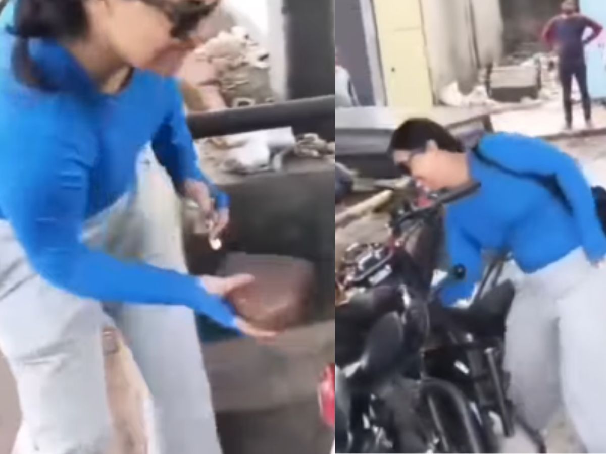 The police can’t do anything to me😳😲, the bike just brushed against the woman, and in a fit of hooliganism, he smashed the entire bike, Jaipur