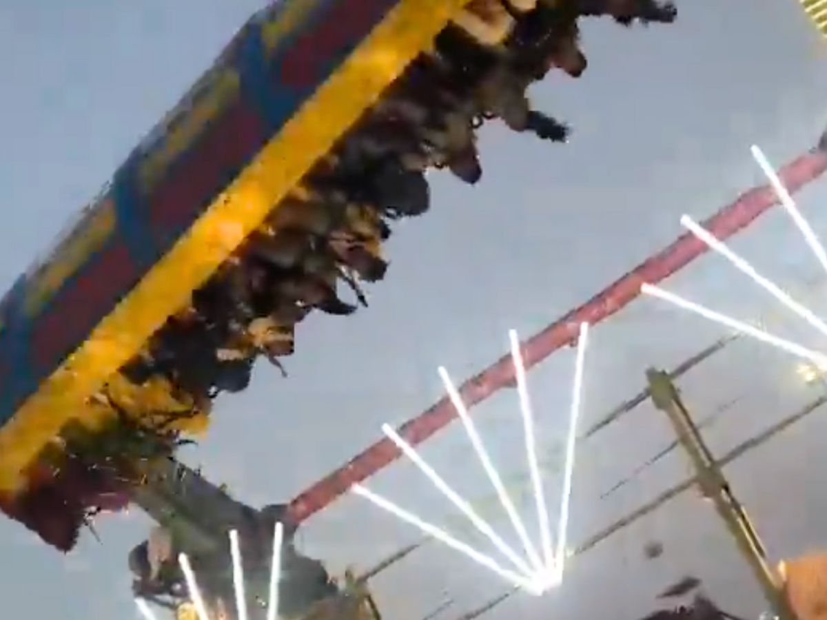 An onlooker’s video shows the ride operating at high speed before the structure buckled, sending riders tumbling to the ground. Screams and chaos erupted as the swing crashed, leaving onlookers stunned.