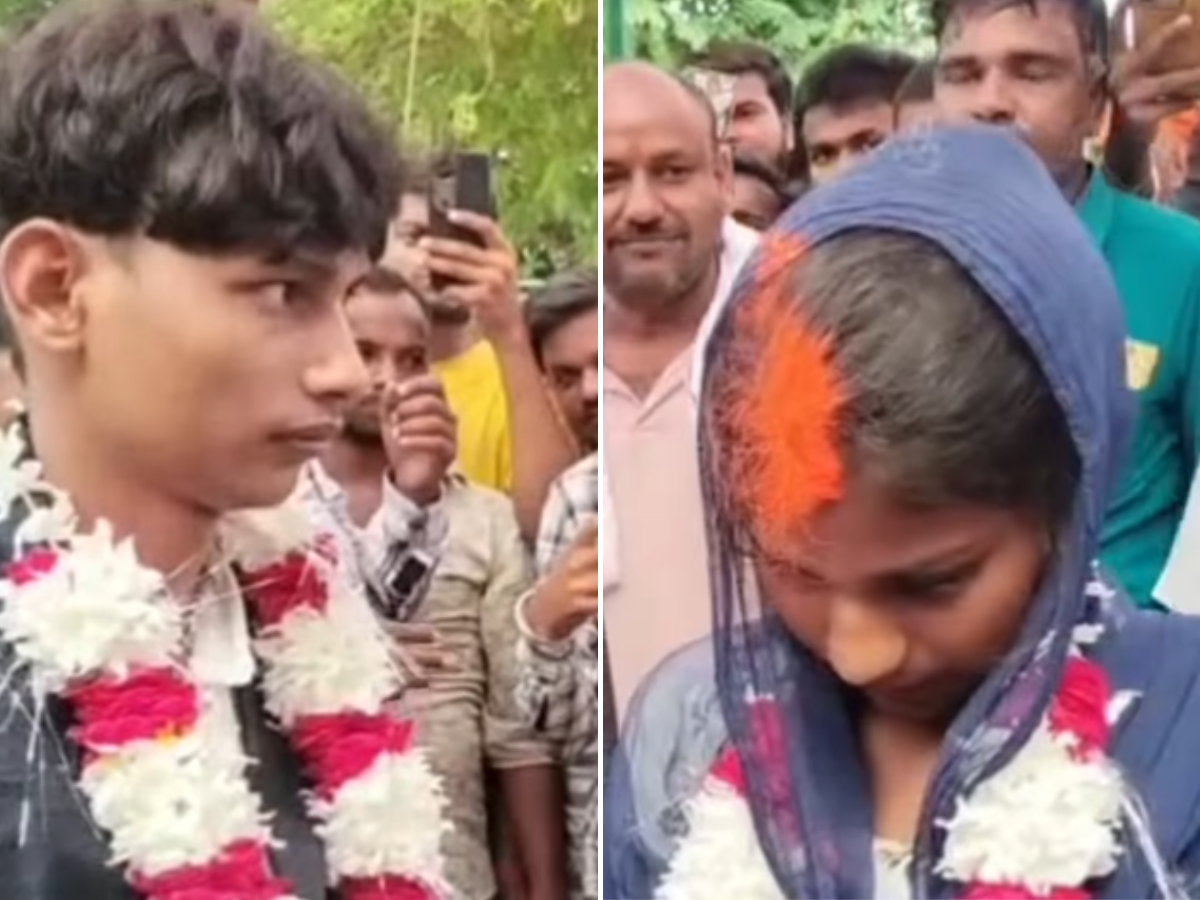In an unexpected twist, a young man and woman who were lovers in the Gonda district of Uttar Pradesh were forcibly married off on each other after being caught red-handed by the village people and relatives as they were riding on a bike.