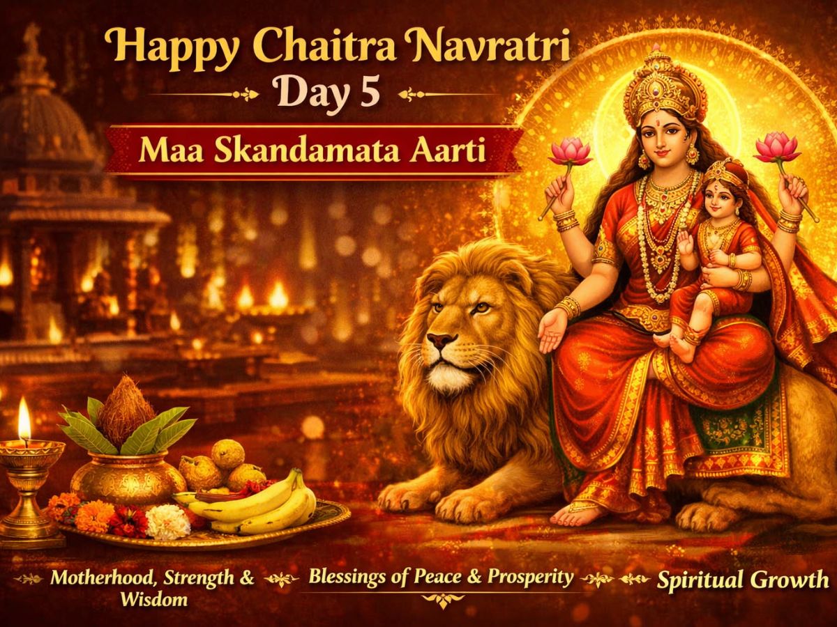 Day 5 of Navratri highlights the importance of motherly love, strength and wisdom. Devotees believe that sincere prayers to Maa Skandamata help in removing obstacles, granting success and bringing emotional balance.
