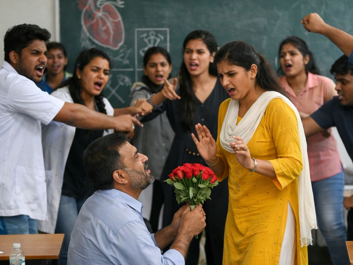 A video that is circulating on social media of a professor suggesting to a female student within a classroom in a private medical college in T. Begur, Nelamangala, Bengaluru has sparked a buzz. It is said that the incident took place on March 26 and concerned Professor Abdul Mohammad and a female student. Students capture video footage of the professor openly stating he is in love with the student in the middle of a lecture, which results in an awkward classroom environment. Awkwardly, it is reported that he had also brought a carton of chocolates and made somebody distribute them to the students.