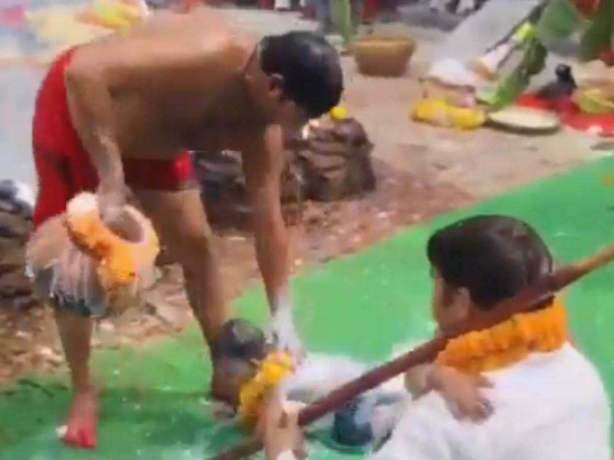 A video of a Hindu priest carrying out a ritual involving two young children has gone viral, sparking widespread attention and debate online. In the clip, the priest is seen pouring boiling milk over the children, leaving many viewers concerned and questioning the nature of the act.