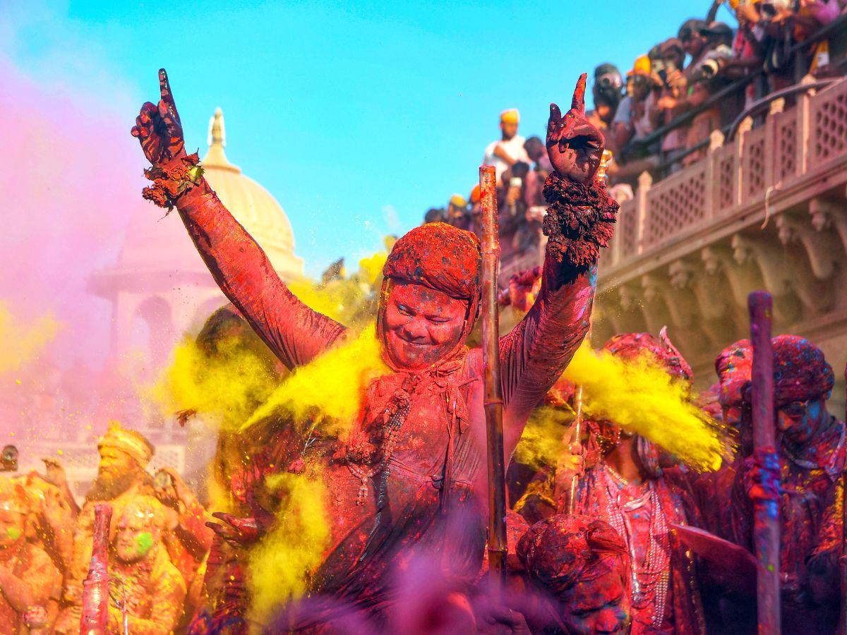 Home of the iconic Lathmar Holi, where women playfully hit men with sticks.