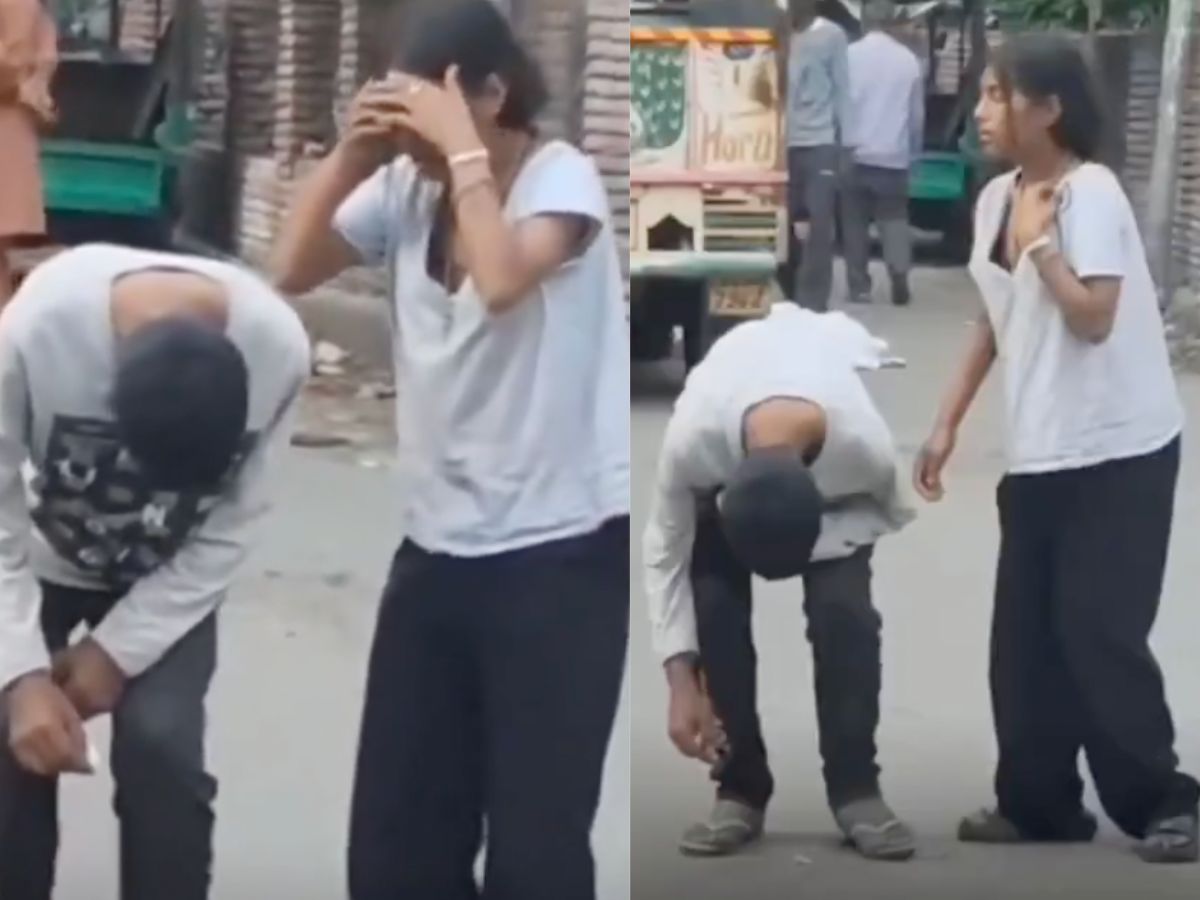 The clip shows two youths, in a severe condition in the middle of a busy street in Ludhiana. A man was bent forward, his waist almost folded. The poor man was seen struggling to stand upright and was swaying uncontrollably.