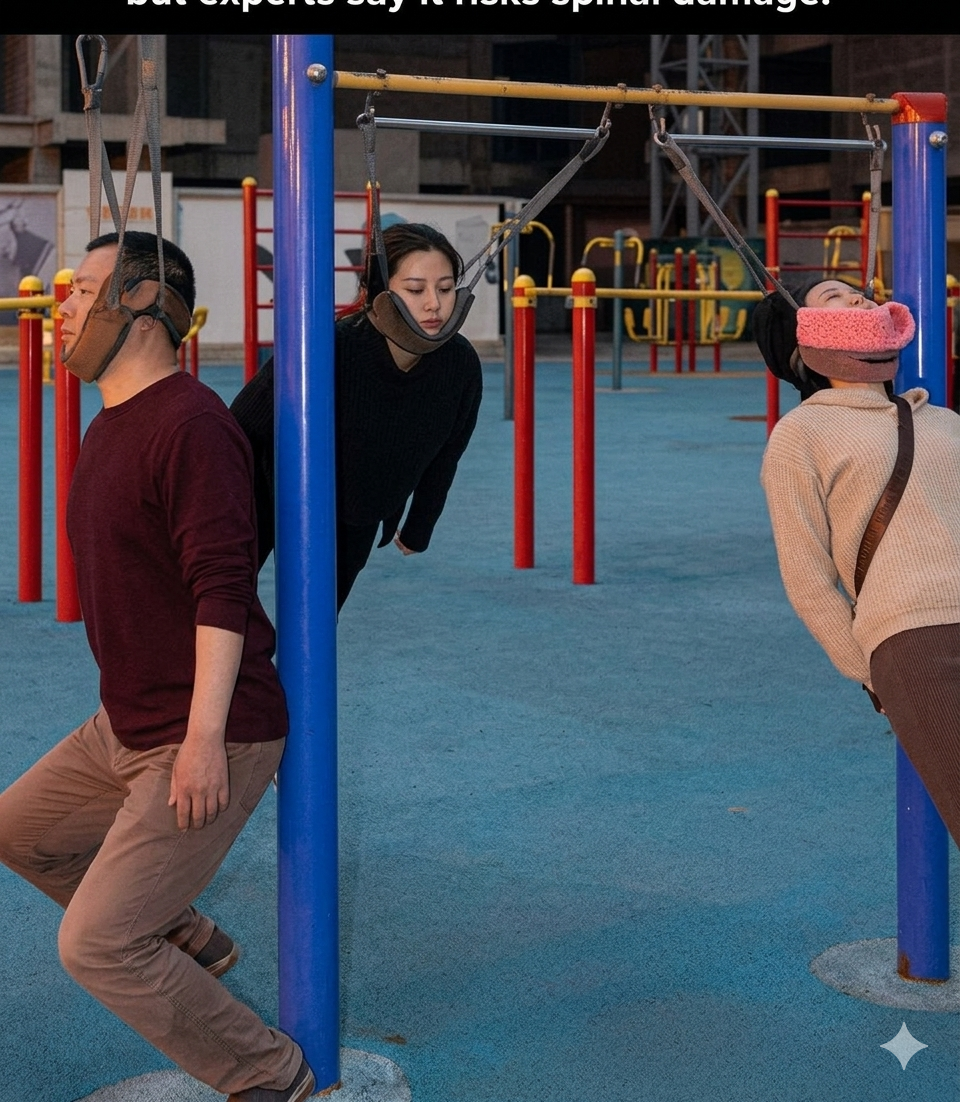 The “neck-hanging exercise” is dangerous and hasn’t been proven to work properly or safely. It is not the same as medical traction therapy, which doctors do using safe equipment and exact measurements.