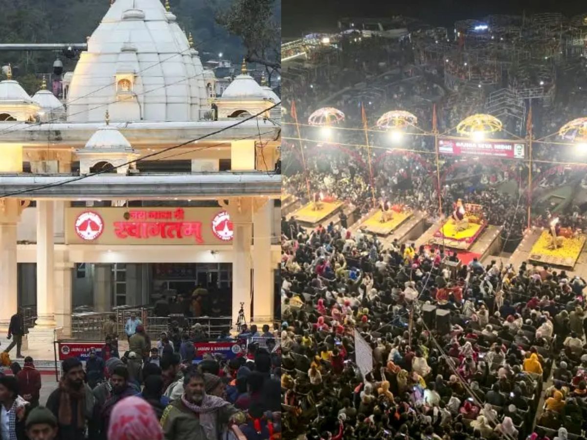 In Katra, the base camp for the Vaishno Devi Yatra in Jammu and Kashmir’s Reasi district, long queues of devotees were seen winding through the pilgrimage route from early morning.