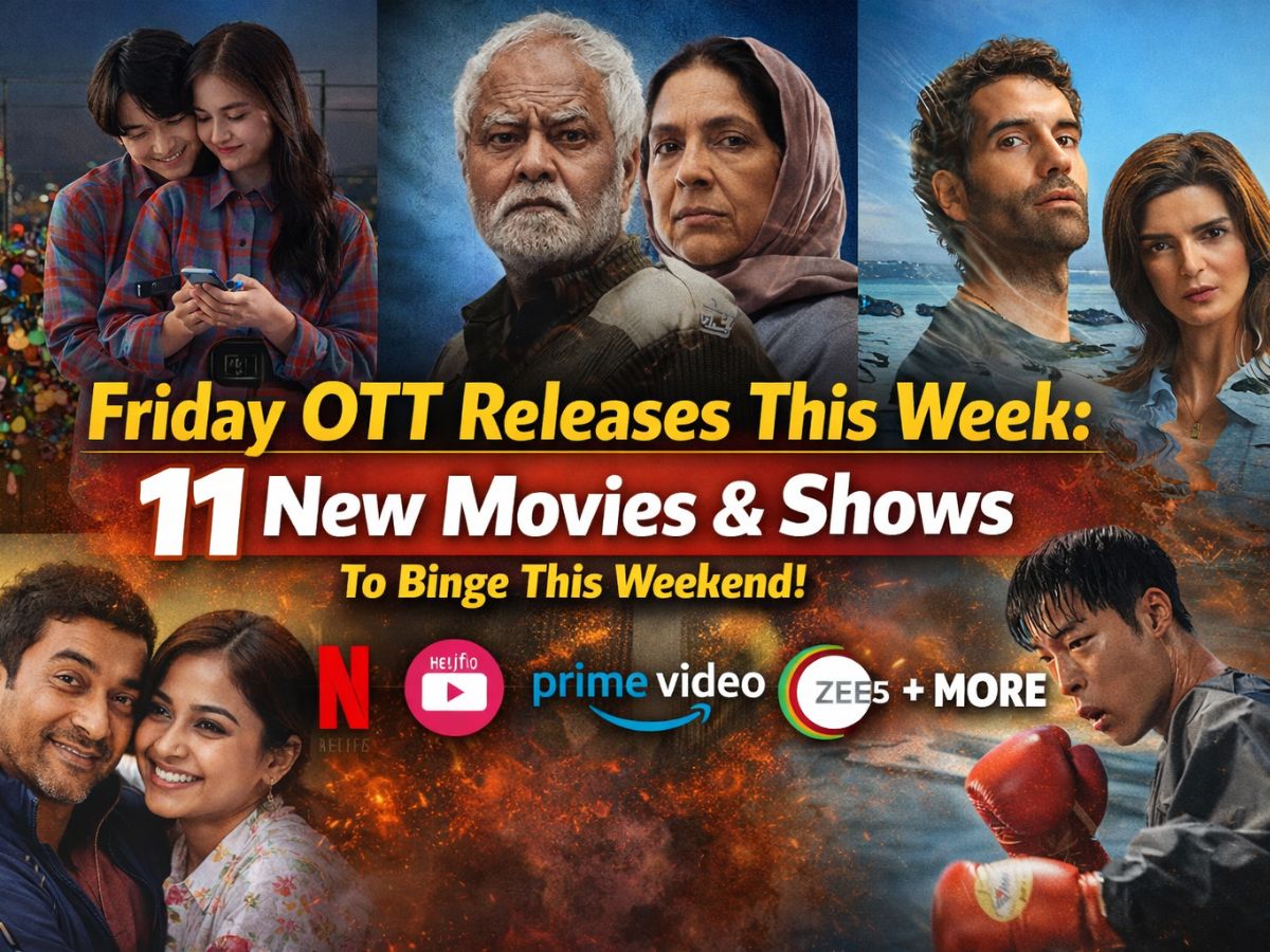 Friday OTT lineup brings a mix of fresh movies and binge worthy shows across Netflix, JioHotstar, Prime Video and more. From courtroom dramas and emotional stories to thrillers and light hearted content there is something for every mood this weekend.