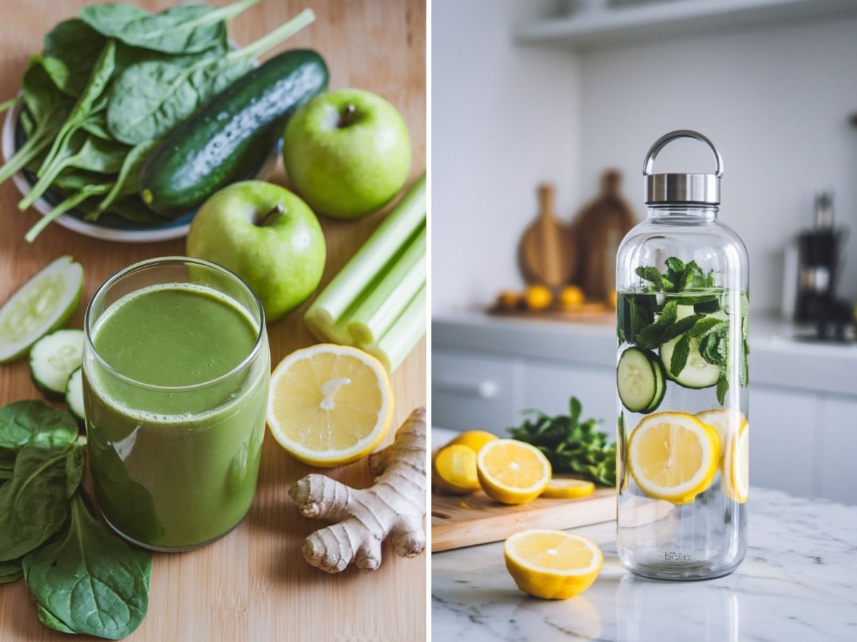 Detox drinks can help keep your gut healthy by improving digestion, calming inflammation, and balancing the good bacteria inside you. These drinks usually contain natural ingredients that help digestion and reduce swelling in the gut. They also help balance the bacteria that live in the intestines, which is important for good health. Having a healthy gut is important because it helps your body absorb nutrients properly, supports your immune system, and keeps you feeling your best. Detox drink. Drinking enough water with these healthy ingredients also helps flush out toxins from the body and keeps the digestive system running smoothly. Regularly consuming these detox drinks, combined with a balanced diet and lifestyle, can improve gut function, reduce digestive discomfort, and enhance overall health.
