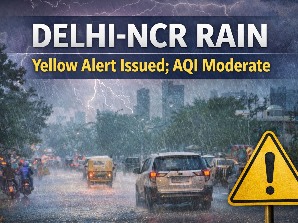 India Meteorological Department has issued a yellow alert for Delhi-NCR, warning of thunderstorms, lightning and light to moderate rainfall. Residents can expect cloudy skies and changing weather conditions through the day.