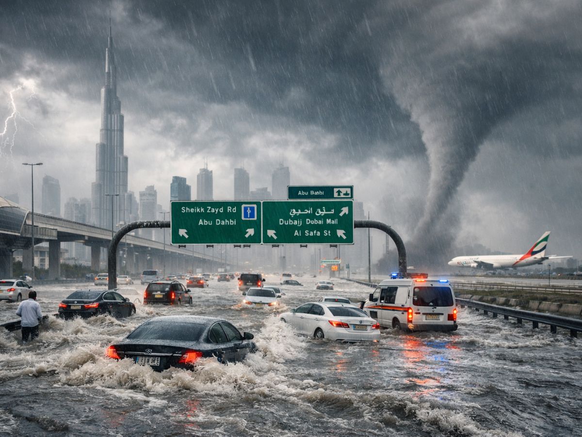UAE Weather Alert Today: Heavy Rain Hits Dubai and Abu Dhabi, Flooding and Tornado Threat Amid Storm Warning | Travel and Airport Advisory Issued