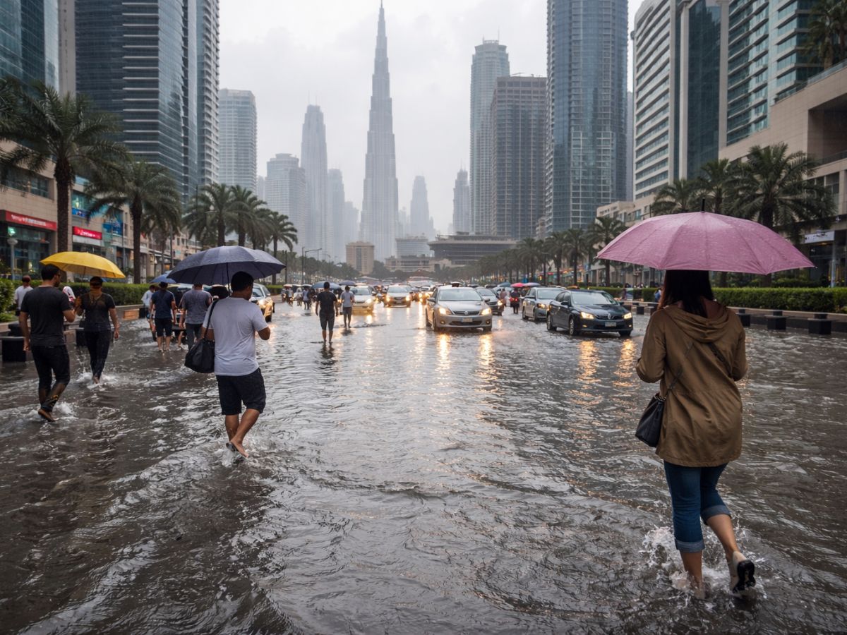 UAE Weather Alert: Heavy Rain Hits Dubai and Abu Dhabi, Residents Face Flooded Streets as NCM Issues 5-Day Forecast and Temperature Drop