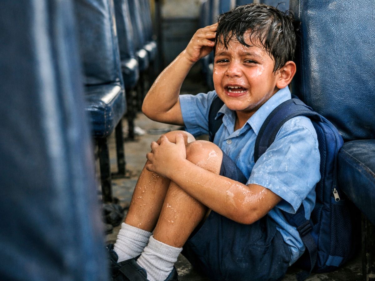 The child was later found terrified and drenched in sweat inside the parked vehicle, triggering outrage among parents and raising serious concerns over school transport safety protocols.