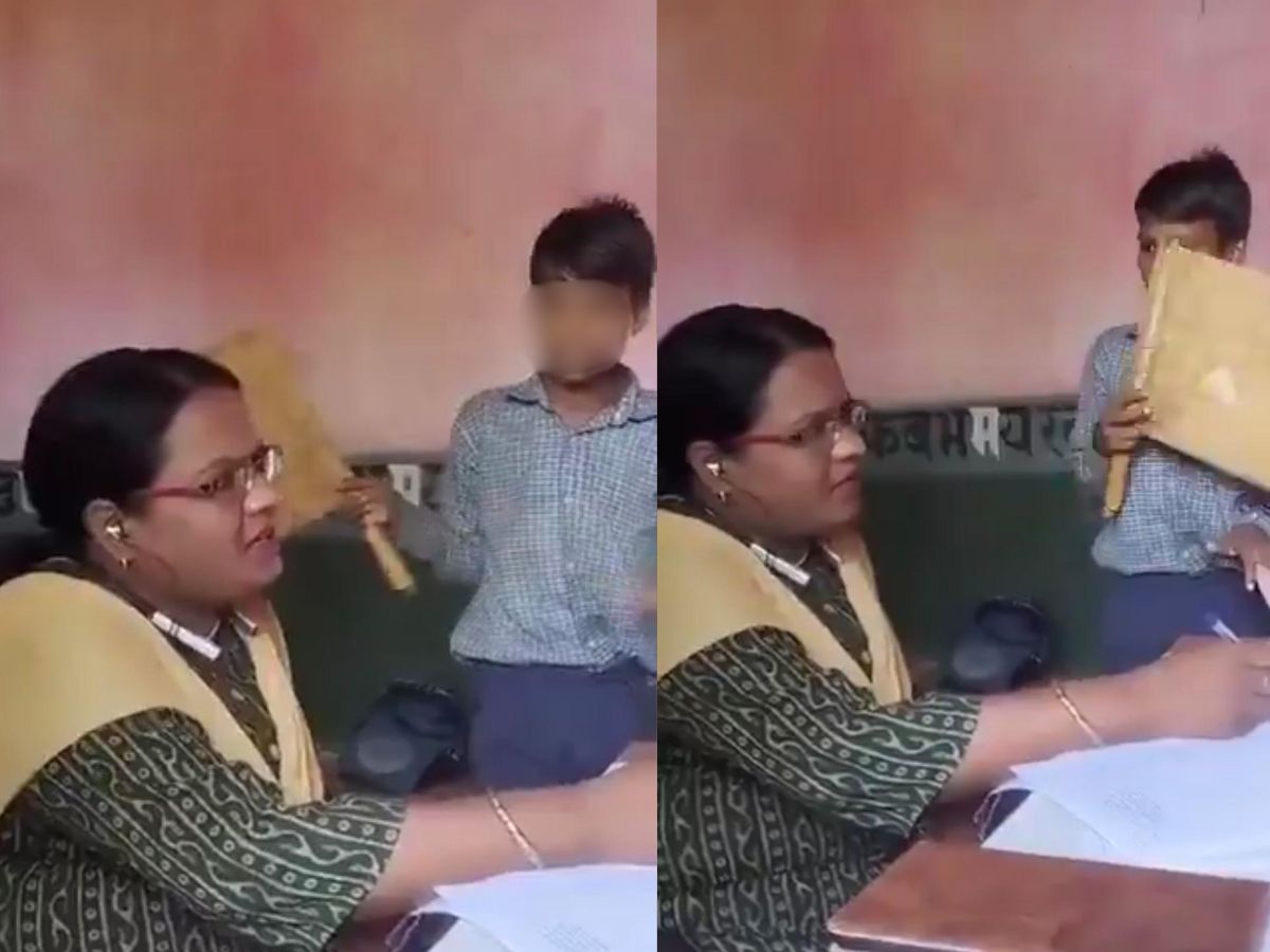 Madhya Pradesh: A video from Rewa in Madhya Pradesh has gone viral, showing a government school teacher taking class while also checking notebooks. With no fan in the classroom, a student is seen fanning the teacher manually to cope with the heat. The clip quickly gained attention online, drawing mixed reactions from users.