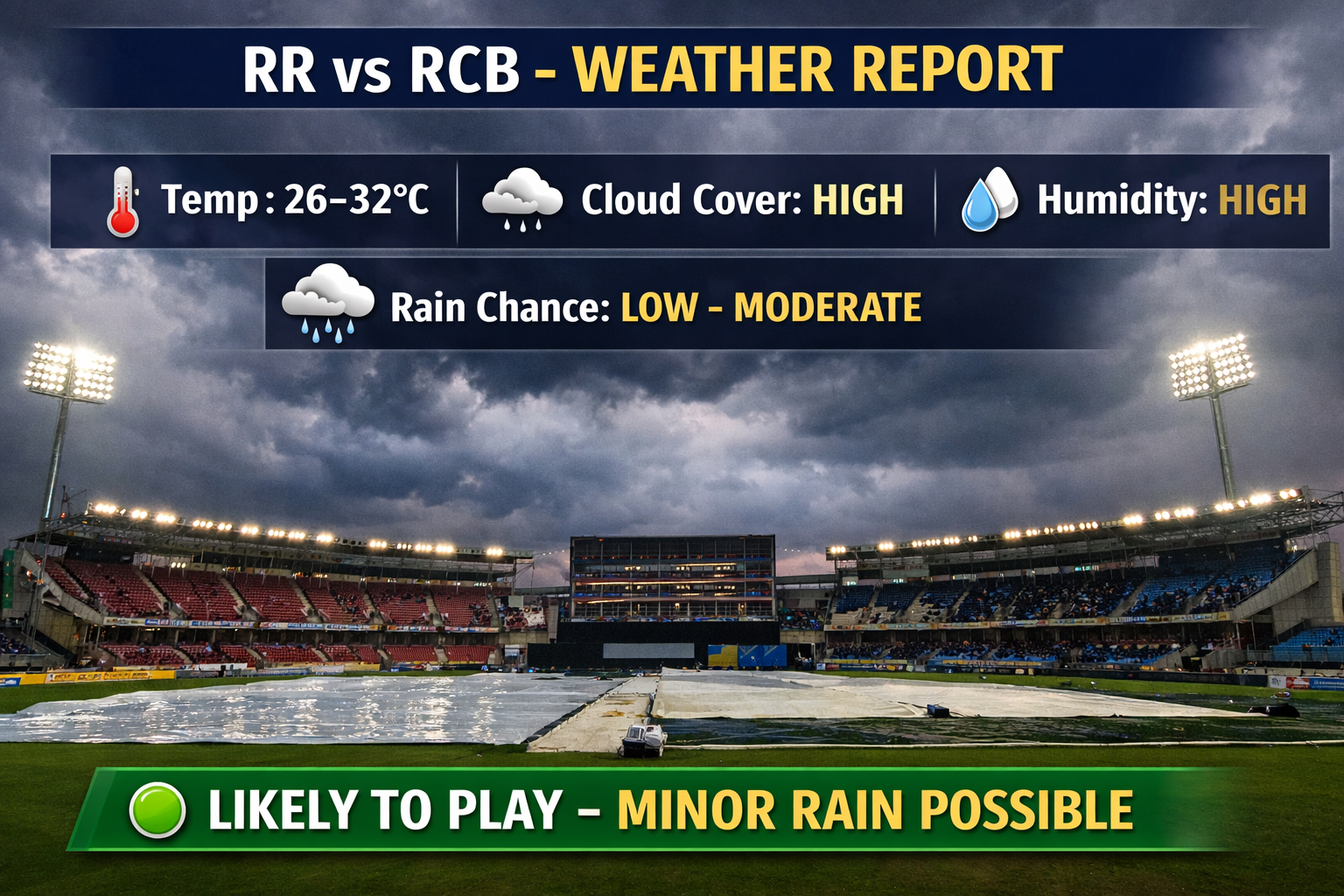 Looking at the forecast, dew is definitely going to play a part. So, you’d expect whoever wins the toss to choose to bowl first. Early on, guys like Jofra Archer and Jacob Duffy could get some swing because of the moisture from earlier rain. But once the pitch dries out under the lights? Runs will flow, and it’s going to be a feast for batters.