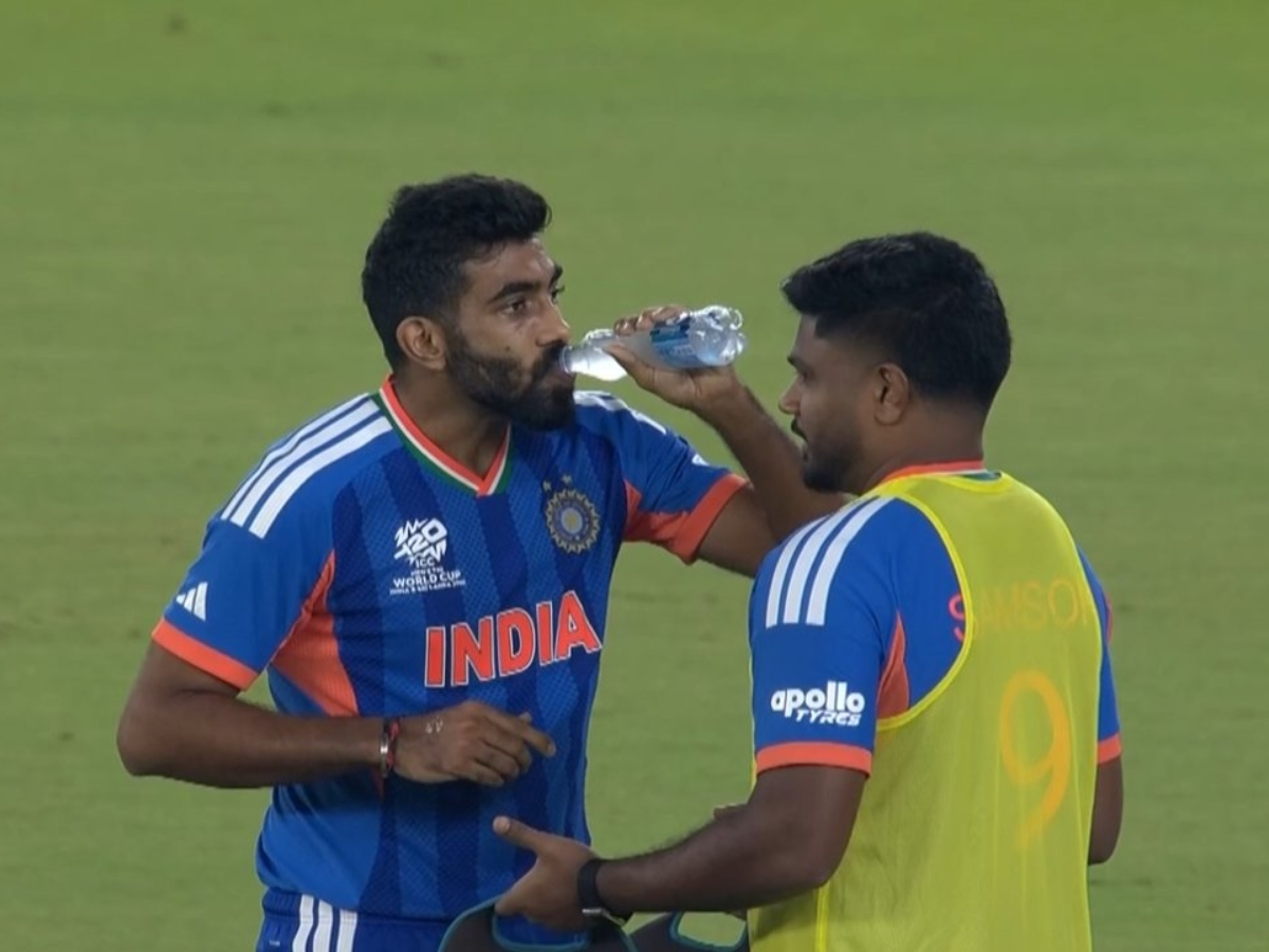 Bumrah takes a sip. Nods.