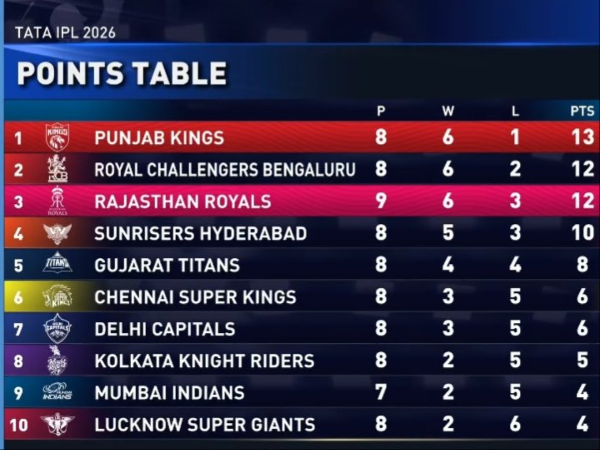 Home > Sports News > IPL 2026 Points Table: Latest Standings on April 28 After PBKS Beat RR— MI, KKR, RCB, SRH, CSK, PBKS, RR, GT, LSG, DC