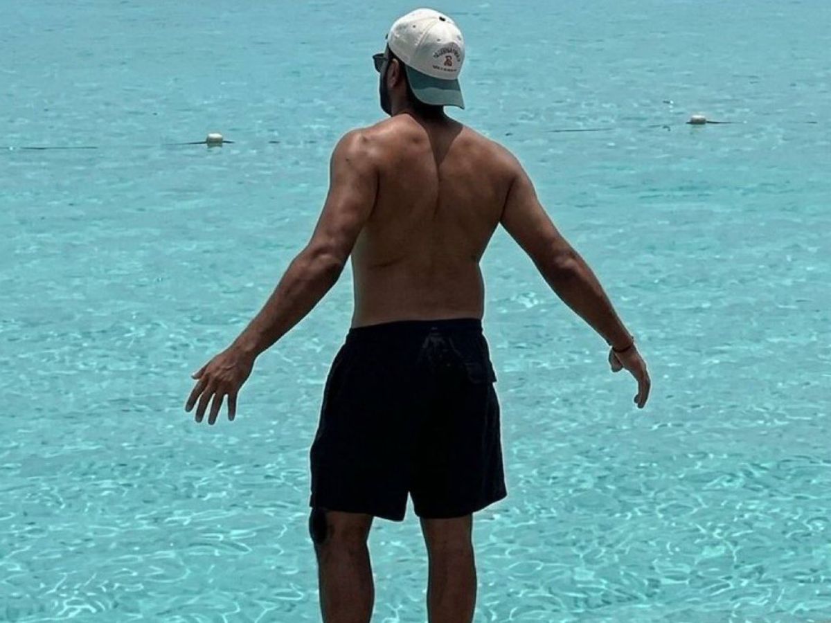 Shirtless Rohit Sharma is running on the beach in the Maldives.😭❤️🔥 pic.twitter.com/N93erwS6VD