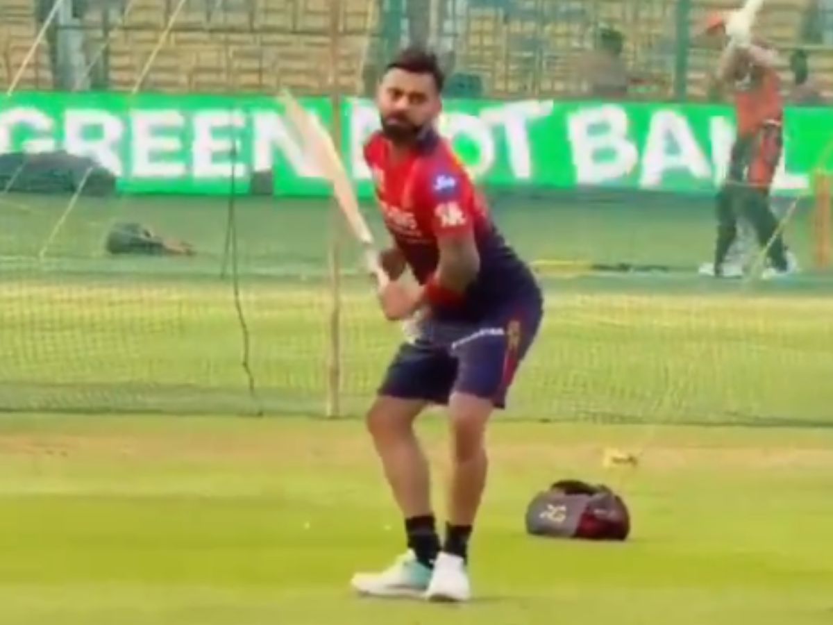 Virat Kohli, ahead of the crucial southern derby clash against Chennai Super Kings, put on his acting shoes as he mimicked Romario Shepherd’s batting stance to perfection. The former RCB skipper appeared to be copying the West Indies’ batter’s stance outside the nets before the RCB vs CSK clash.