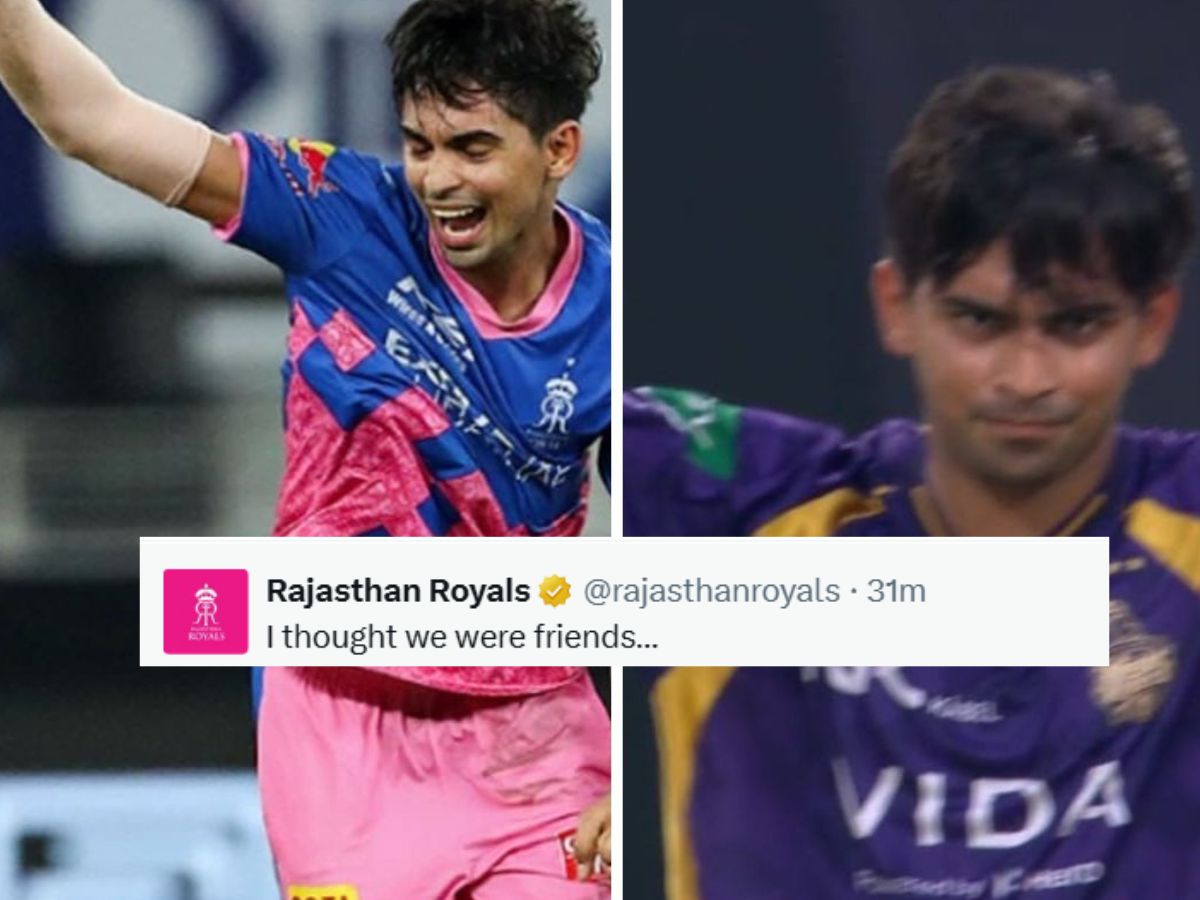 Rajasthan Royals have been known for their quirky social media posts and once again the franchise came up a funny reply to Kartik Tyagi’s bowling performance. Tyagi who was once a part of the Rajasthan Royals dug out is now playing for Kolkata Knight Riders. The two sides are locking horns against each other at the Eden Gardens Stadium where KKR restricted RR to 155/9 in 20 overs.