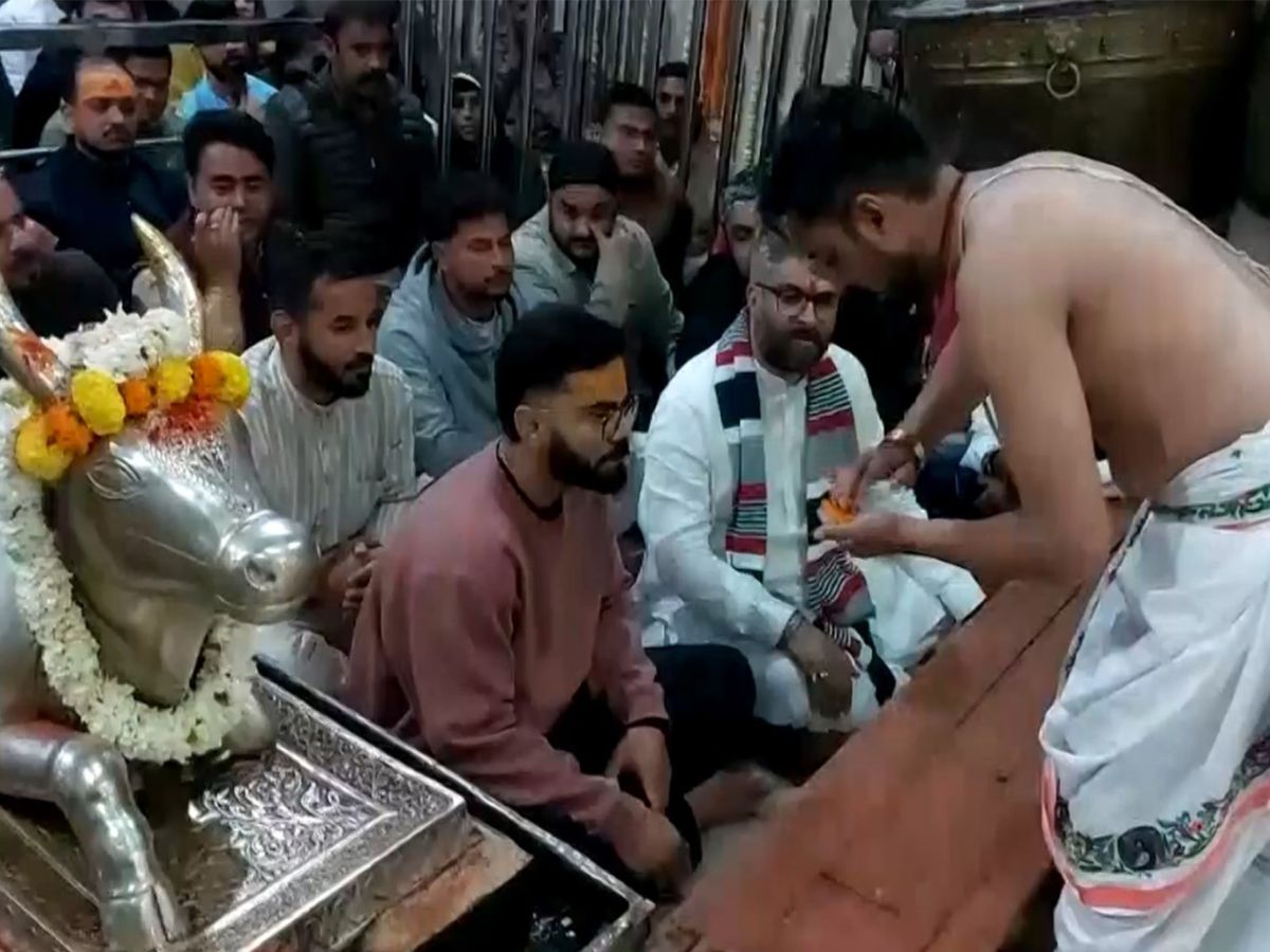 #WATCH | Madhya Pradesh | Former Indian Captain and Star Cricketer Virat Kohli offered prayers at Shree Mahakaleshwar Temple in Ujjain.