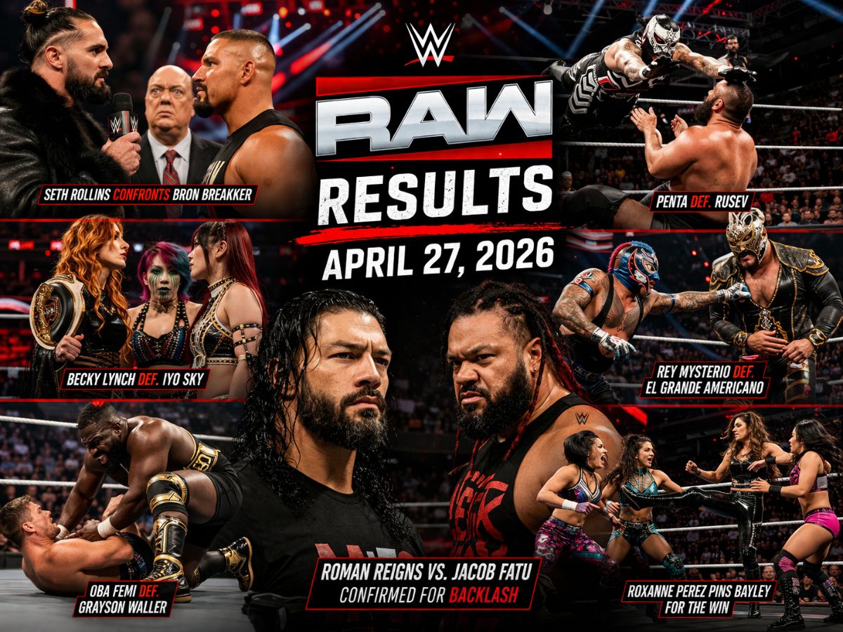 WWE RAW Results & Highlights (April 27, 2026): The April 27 episode of WWE Raw was broadcast from the Sames Auto Arena in Laredo, Texas, marking the beginning of the build-up to WWE Backlash. With the fallout from WrestleMania 42 still dominating storylines, WWE delivered a packed show headlined by Roman Reigns and Becky Lynch.