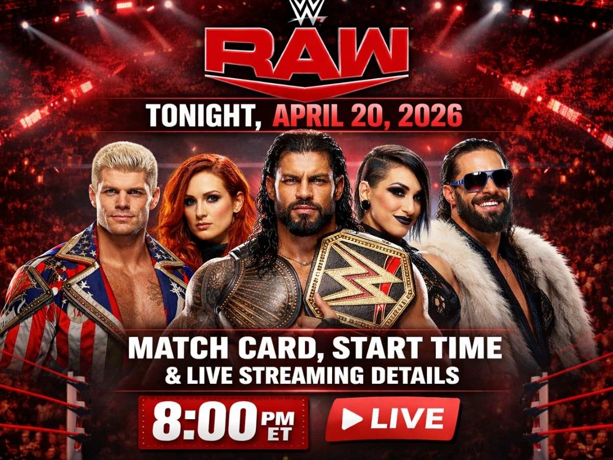 WWE Raw Tonight, April 20, 2026 Live Streaming & Channel Broadcast Details: This Monday’s WWE Raw will present one of the most significant episodes following WrestleMania 42, which wrapped up on Sunday in Las Vegas. The PLE experienced several title shifts, alongside Paige’s return and Bianca Belair’s appearance, during which she revealed her pregnancy. Brock Lesnar declared his retirement following his defeat against Oba Femi. In the main event of Night 1, Cody Rhodes successfully defended against Randy Orton but suffered an injury from an Orton attack afterward, while Night 2 concluded with Roman Reigns overcoming CM Punk to win the World Heavyweight title.