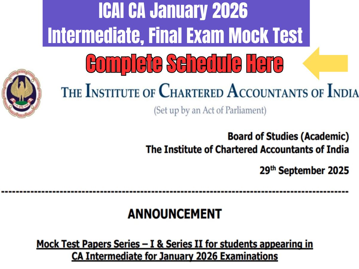 ICAI CA Intermediate January 2026 Mock Test: The Institute of Chartered Accountants of India has announced the schedule for the…