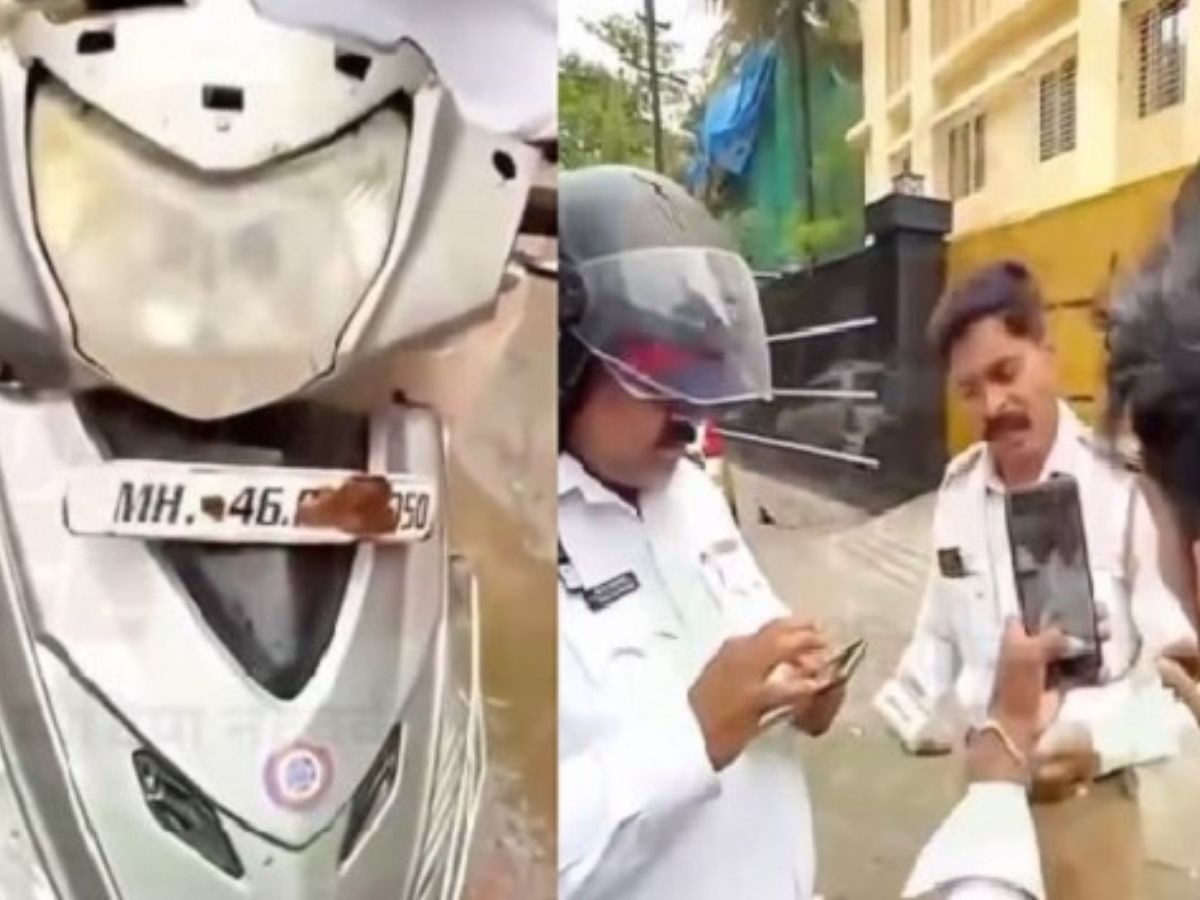 Thane Youth Catches Traffic Cops Riding Helmetless Scooty With Broken Number Plate, Watch