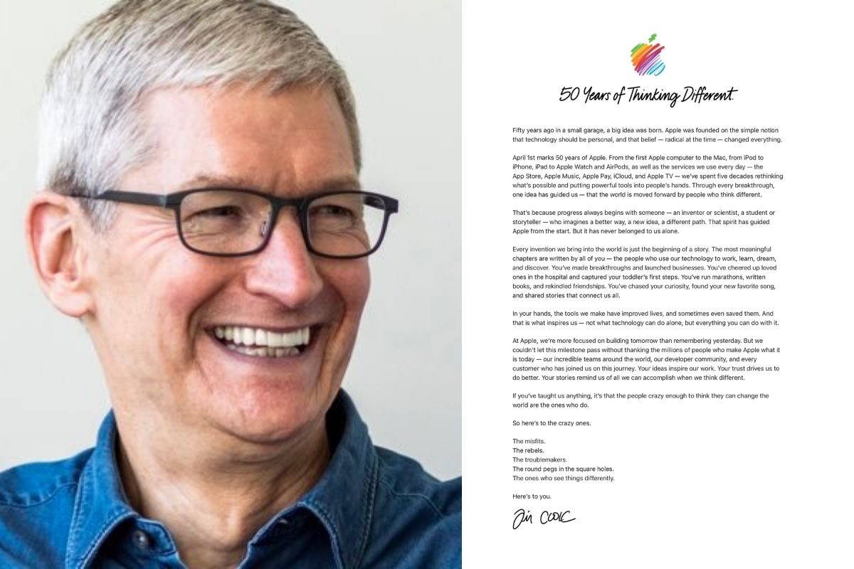 US based tech giant Apple is turning 50 on 1st April 2026 and CEO Tim Cook has shared a letter reflecting the company’s journey ahead of the milestone. The message shared by Tim is titled “50 Years of Thinking Different”, appears on Apple’s website and looks back at the company’s legacy while hinting at celebrations planned around the anniversary.