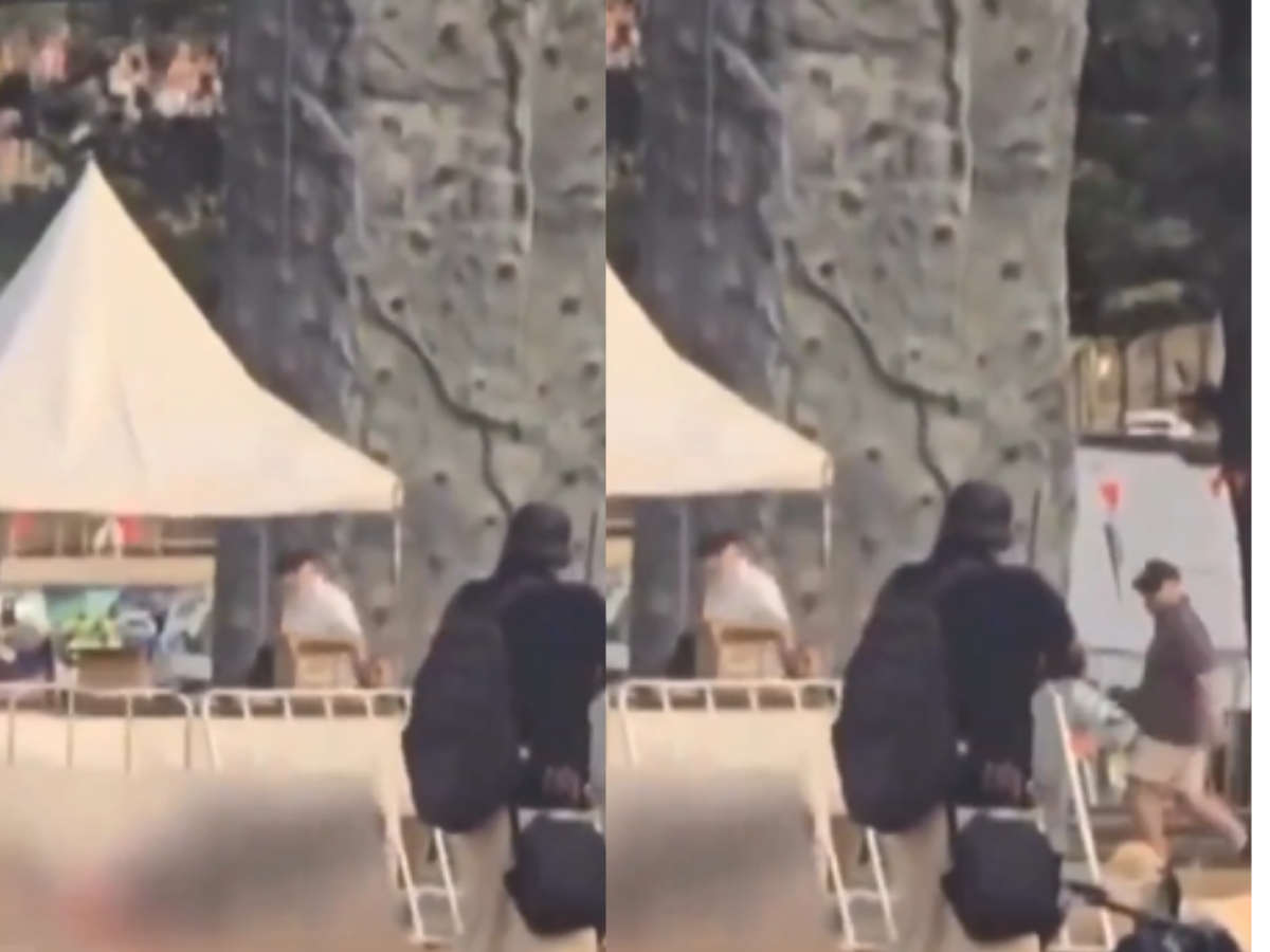 Many videos from the Bondi Beach mass shooting during a Hanukkah event in Sydney have emerged; one such video shows a moment of bravery between an elderly person and one of the shooters.