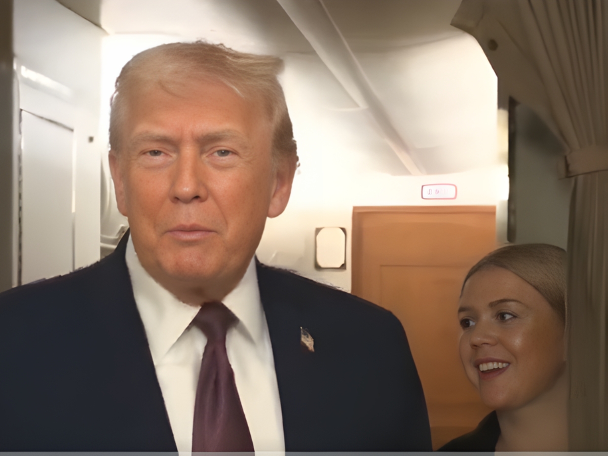 During the bumpy flight, Trump made an unconventional joke about White House Press Secretary Karoline Leavitt.
