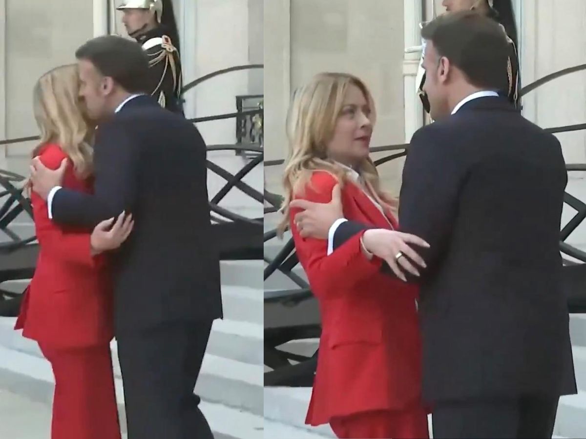 Emmanuel Macron and Giorgia Meloni were seen sharing an awkward on-camera hug, with the clip quickly going viral and drawing widespread attention across social media.