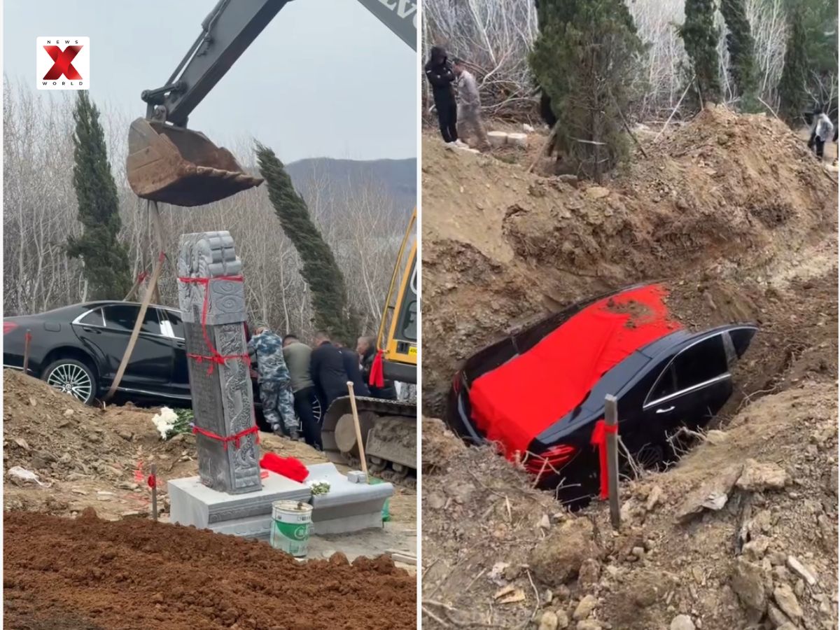 The incident took place in Liaoning province, where the Jin family arranged a grand funeral and included a luxury car as part of the last rites. Videos shared on Chinese social media showed an excavator slowly lowering the car into a dug grave, after which it was covered with soil.