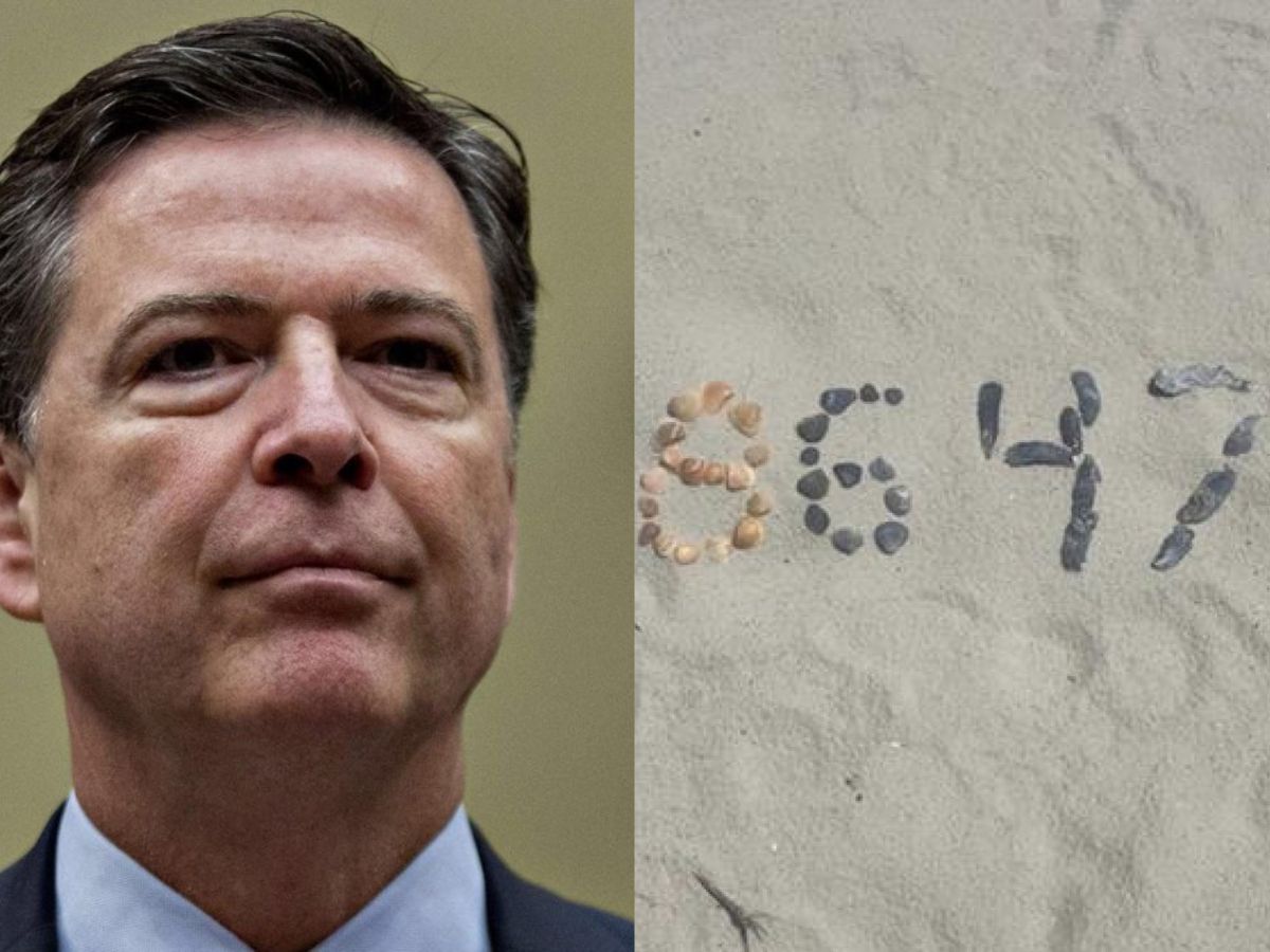 In May, Comey shared a photo on social media showing seashells arranged on a beach in the shape of the numbers “86” and “47.” The caption read, “Cool shell formation on my beach walk.”