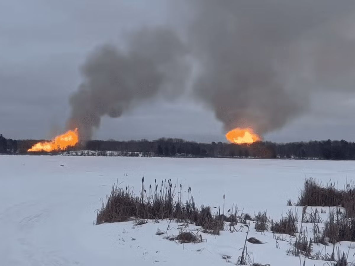 Willow River, Minnesota: A massive explosion followed by an intense fire was reported near Willow River in Pine County on Friday, prompting emergency evacuations and a large-scale response from local authorities. Officials said the incident is believed to involve a gas pipeline, though the exact cause has not yet been confirmed.